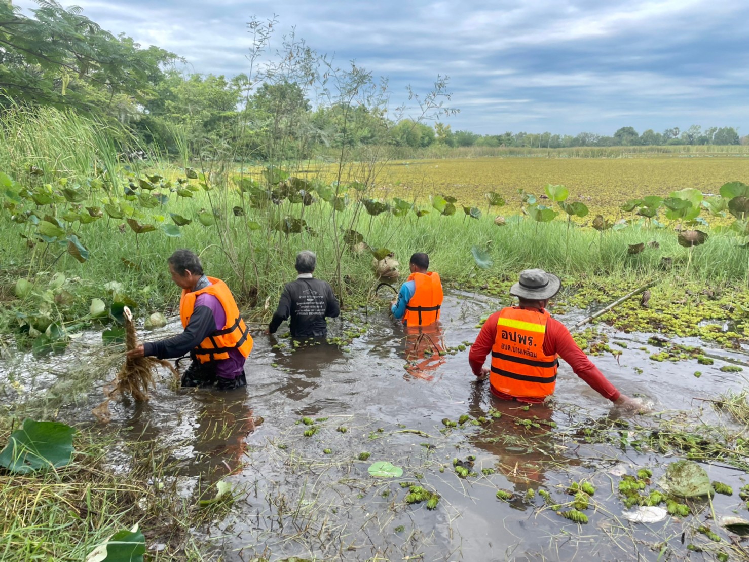 องค์การบริหารส่วนตำบลช่อระกา ร่วมกับองค์การบริหารส่วนจังหวัดนครราชสีมา กำนันตำบลช่อระกา ผู้ใหญ่บ้าน ชรบ. จิตอาสา อาสาสมัครท้องถิ่นรักษ์โลก (อถล.) และประชาชน ทำกิจกรรมกำจัดวัชพืชและปรับปรุงภูมิทัศน์ ตามโครงการกำจัดวัชพืชบึงบ้านม่วง หมู่ที่ 2 ประจำปีงบประมาณ พ.ศ. 2565 ระหว่างวันที่ 5 – 7 กันยายน 2565 ณ บริเวณบึงบ้านม่วง หมู่ที่ 2 ตำบลช่อระกา